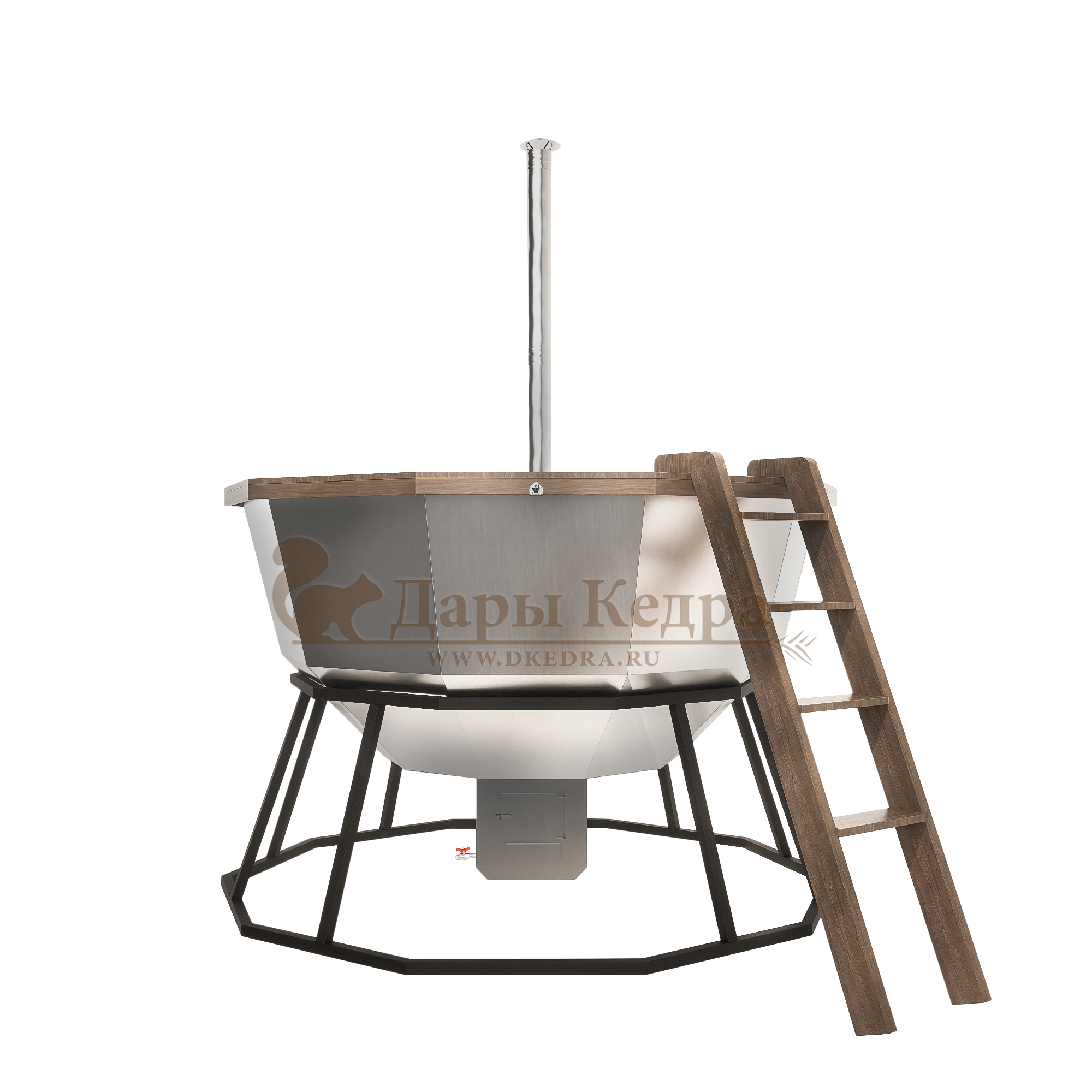 Банный чан из нержавеющей стали Ø-2350 на подставке с приварной печью с водяной рубашкой