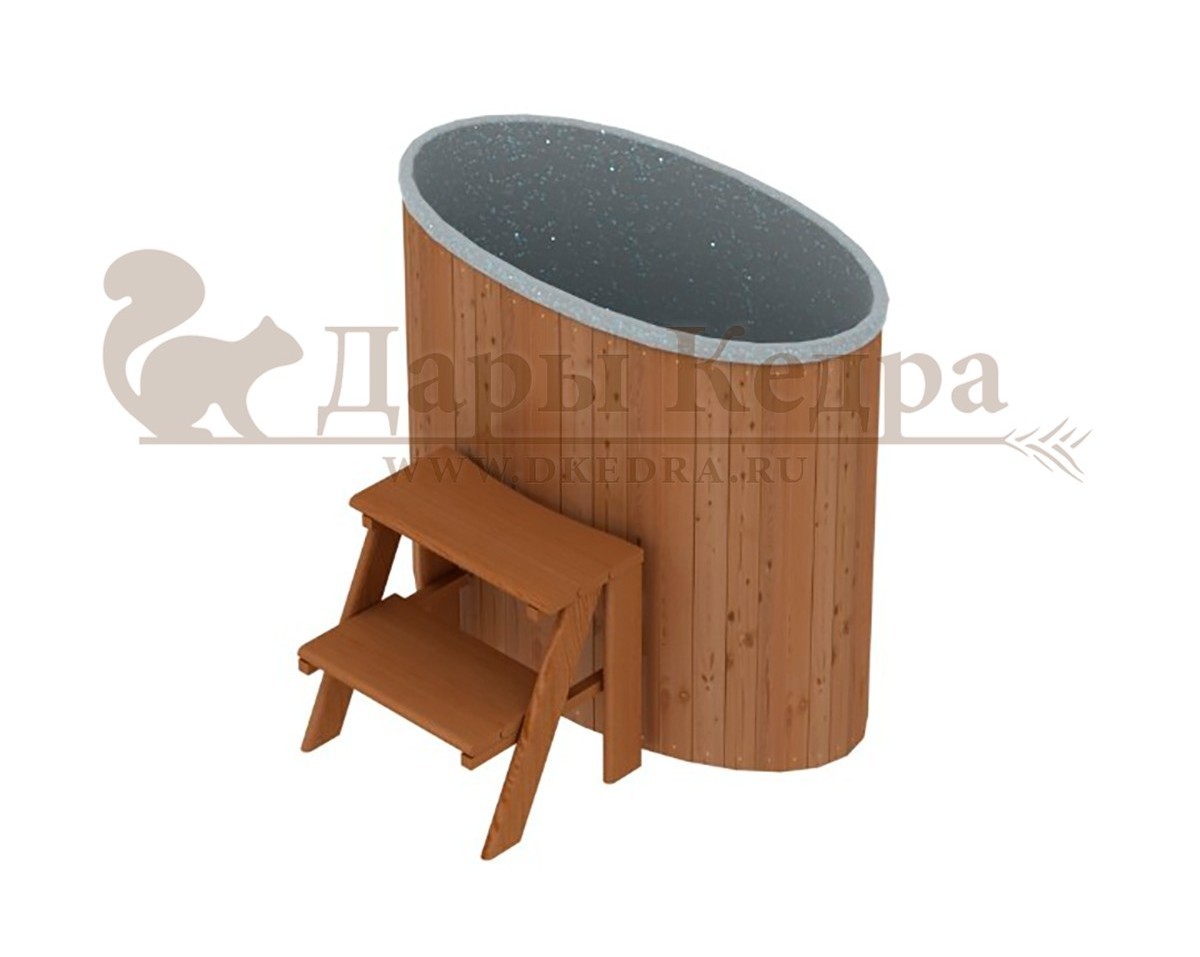• Овальная композитная купель «НОТА 79» Это купель с внутренней овальной чашей, которая изготовлена из современного прочного и термоустойчивого материала (композита). Форма чаши обеспечивает комфортную посадку внутри изделия. Для удобного использования купель оснащена приставной лестницей. Обручи из нержавеющей стали декорируют купель с композитом и равномерно распределяют нагрузку во время процедур. Подходит для установки в помещении и на открытом воздухе. При уличном использовании, рекомендуется дополнительно оборудовать купель водогрейной твердотопливной печью. Композитная вставка облегчает уход за изделием и увеличивает срок службы купели.