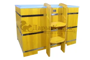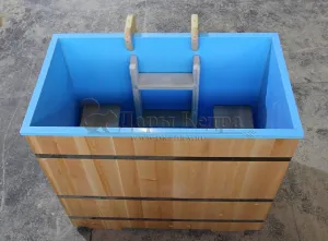 Это емкость для воды с прямоугольной пластиковой чашей. Купель предназначена для отдыха и охлаждения тела после процедур парения. Подходит для уличного и комнатного использования. Для удобства пользования овальная купель с пластиковой вставкой оснащена лавочками, приставной и внутренней лестницей из кедра.